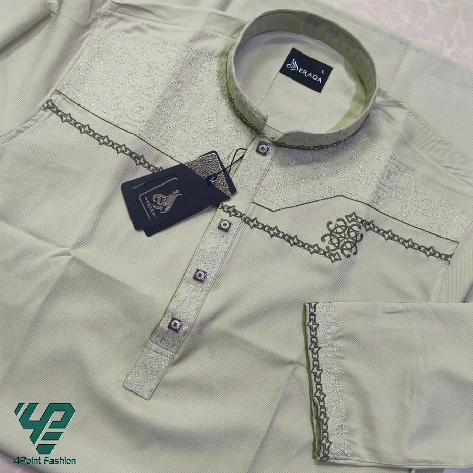 Designer Lemon Color Panjabi with Exclusive Chest Work – 4point Fashion